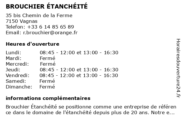 | Samedi | Fermé |