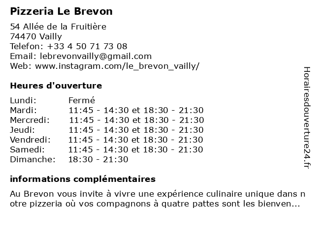 | Mardi | 11:45-14:30 et 18:30-21:30 |