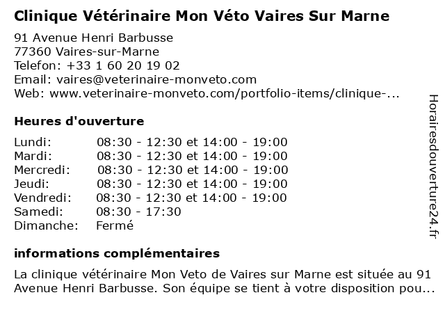 | Lundi | 08:30-12:30 et 14:00-19:00 |