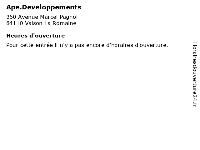 1 Ape.Developpements (Distance: 36,96 km) 35 Rue Basse Bourgade, 26290 Donzere ape, developpements, restaurants |