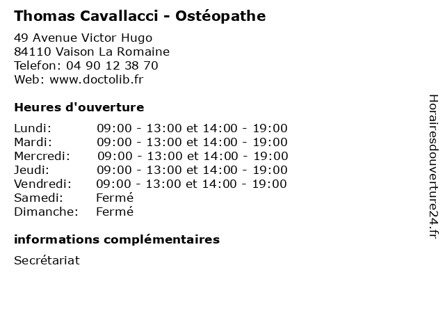 | Jeudi | 09:00-13:00 et 14:00-19:00 |