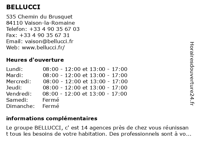 2 BELLUCCI (Distance: 24,57 km)72 Impasse des Bleuets, 84100 Orange bellucci