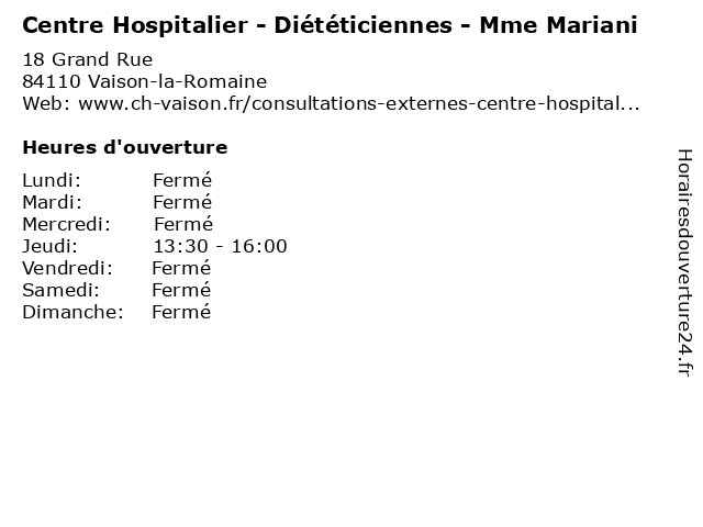 Termes de recherche pour Centre Hospitalier - Diététiciennes - Mme Mariani:bureau, centre, med, mme, traitement, hospitalier, médecin, consultation, la médecine, dr, mariani, therapie, diététiciennes, la maladie, la pratique |