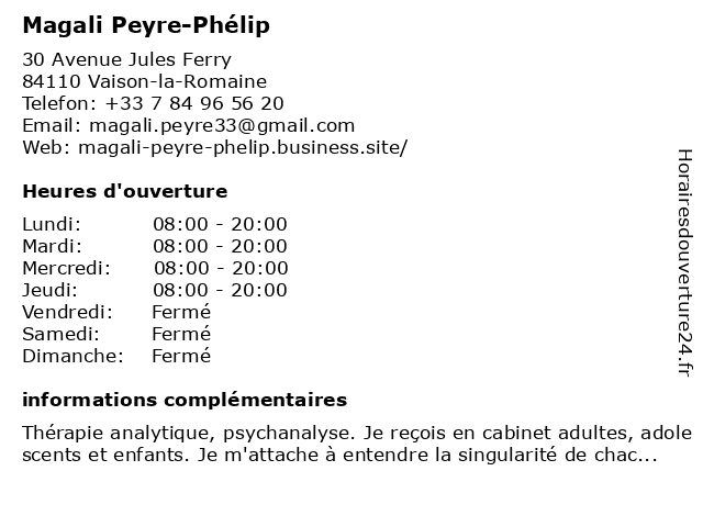 | Jeudi | 08:00-20:00 |
