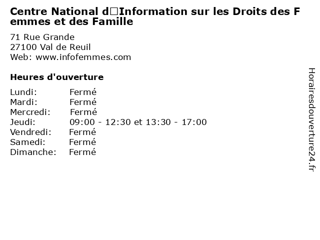 | Jeudi | 09:00-12:30 et 13:30-17:00 |