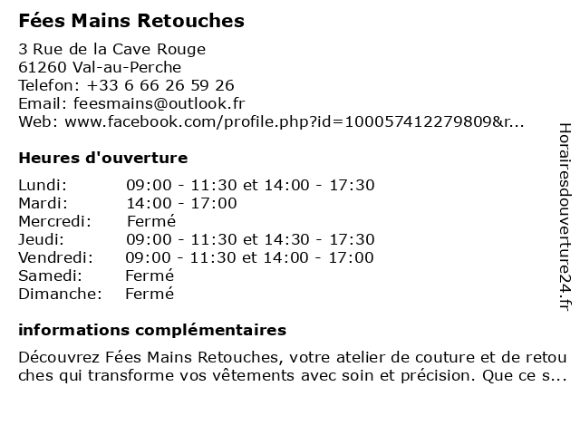 Lundi | 09:00-11:30 et 14:00-17:30 |