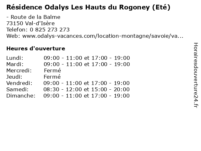 | Samedi | 08:30-12:00 et 15:00-20:00 |