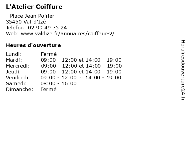 | Mardi | 09:00-12:00 et 14:00-19:00 |