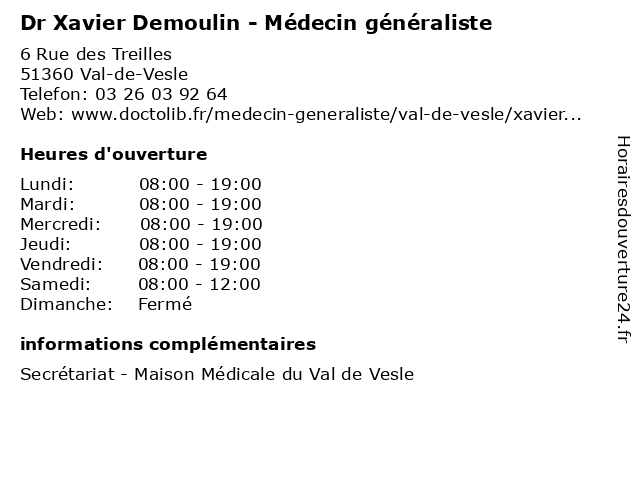 1 Dr Xavier Dubernard - Médecin ORL (Distance: 14,83 km) - rue du General Koenig, 51090 Reims consultation, docteur, dr, dubernard, med, médecin, médecine, orl, traitement, xavier 2 Dr François-Xavier Romain - Anesthésiste (Distance: 14,83 km) - Rue Du General Koenig, 51100 Reims anesthésiste, consultation, docteur, dr, francois, françois, med, médecin, romain, traitement, xavier 3 Dr Xavier Schwartz - Médecin généraliste (Distance: 14,83 km) - Rue Du General Koenig, 51100 Reims consultation, docteur, dr, généraliste, med, médecin, schwartz, traitement, xavier 4 Dr Xavier Ohl - Chirurgien orthopédiste (Distance: 15,36 km) 45 Rue Cognacq Jay, 51100 Reims chirurgien, consultation, docteur, dr, med, medecine, medical, médecin, ohl, orthopédiste, traitement, xavier 5 Dr Xavier Martinache - Chirurgien orthopédiste - secrétariat (Distance: 15,40 km) 5 Boulevard de la Paix, 51100 Reims chirurgien, consultation, docteur, dr, martinache, med, médecin, médecine, orthopédiste, secrétariat, traitement, xavier 6 Boulangerie Xavier et Anne-Claire Lefévre (Distance: 15,75 km) 42 rue Coquebert, 51100 Reims anne, boulangerie, claire, desserts, et, lefévre, pâtisserie, xavier, épiceries |