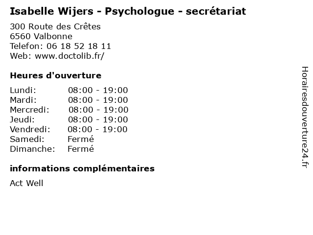 Termes de recherche pour Isabelle Wijers - Psychologue - secrétariat:isabelle, secretariat, médecins, psychologue, thérapies, cabinets, wijers |