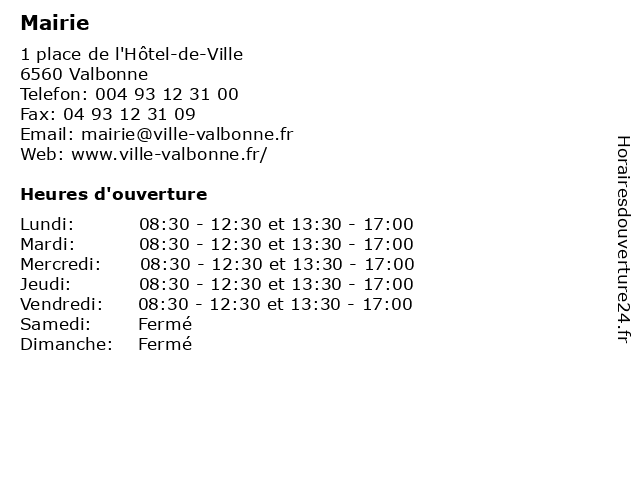 | Lundi | 08:30-12:30 et 13:30-17:00 |