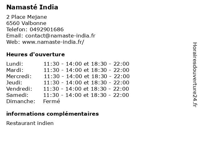 | Lundi | 11:30-14:00 et 18:30-22:00 |