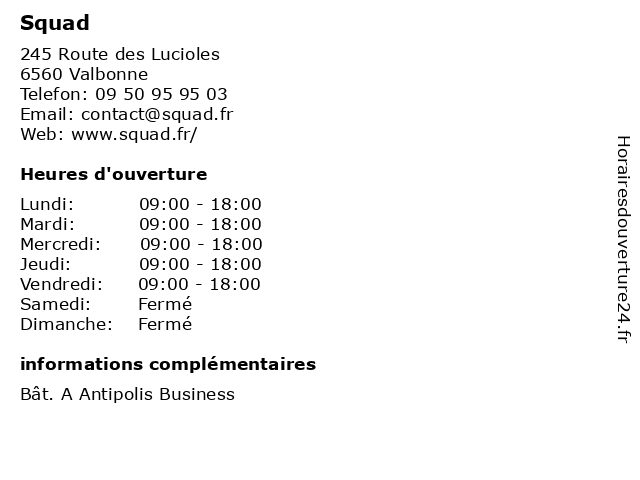 Horaires d'ouverture |