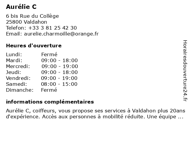 | Lundi | Fermé |