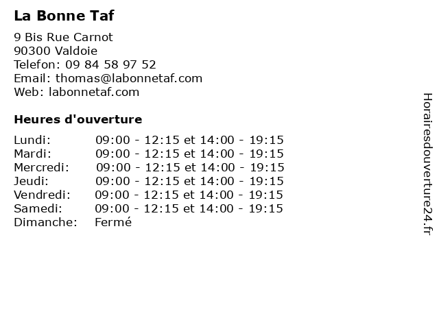 | Mardi | 09:00-12:15 et 14:00-19:15 |