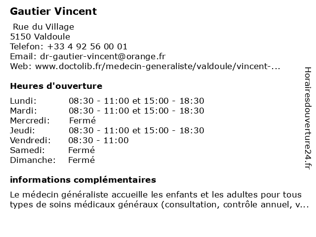 | Lundi | 08:30-11:00 et 15:00-18:30 |
