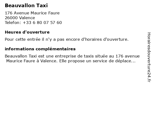 1 Taxi Grangeois (Distance: 3,01 km) 1215 Avenue de la République, 07500 Guilherand-Granges grangeois, taxi 2 Taxi Ben Service (Distance: 3,95 km) 205 Rue Antoine de Saint-Exupéry, 26760 Beaumont-lès-Valence ben, service, taxi 5 Allo Taxi Portois (Distance: 4,31 km) 84 Rue Jean Jaurès, 26800 Portes-lès-Valence allo, portois, taxi 6 |
