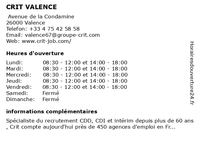 Termes de recherche pour CRIT VALENCE:valence, crit |