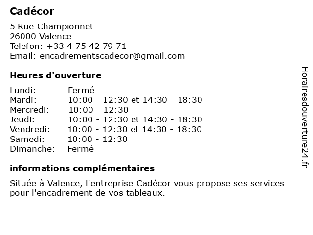 | Mardi | 10:00-12:30 et 14:30-18:30 |