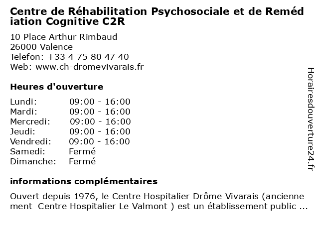 Termes de recherche pour Centre de Réhabilitation Psychosociale et de Remédiation Cognitive C2R:et, de, centre, cognitive, réhabilitation, c2r, remediation, psychosociale |