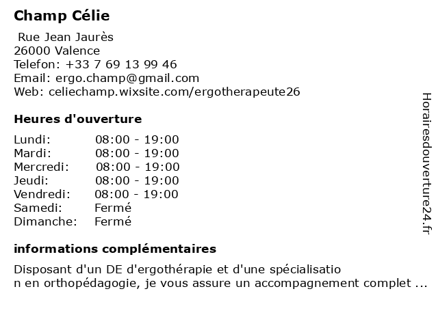 | Samedi | Fermé |
