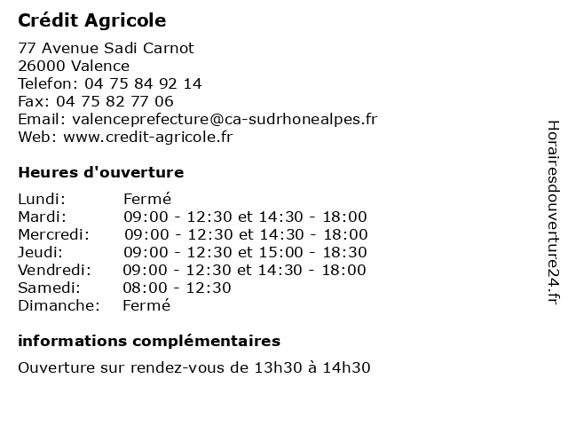 1 Crédit Agricole (Distance: 0,13 km) . Route de Romans, 26000 Valence agricole, beaute, cafe, chaussures, crédit, enfants, lingerie, mode femmes, mode hommes, restaurant, sport 2 Crédit Agricole (Distance: 0,43 km) - Place de l'Hôtel de Ville, 07130 Saint-Peray agence, agricole, assurance, bancaire, banque, crédit 3 Crédit Agricole (Distance: 1,46 km) 116-118 Rue Châteauvert, 26000 Valence agence, agricole, assurance, bancaire, banque, crédit 4 Crédit Agricole (Distance: 1,63 km) 537 Avenue de la République, 07500 Guilherand-Granges agence, agricole, assurance, bancaire, banque, crédit 5 Crédit Agricole (Distance: 2,27 km) 359 Avenue Victor Hugo, 26000 Valence agence, agricole, assurance, bancaire, banque, crédit 6 Crédit Agricole (Distance: 9,26 km) - Place Charles de Gaulle, 07800 Charmes sur Rhône agence, agricole, assurance, bancaire, banque, crédit |
