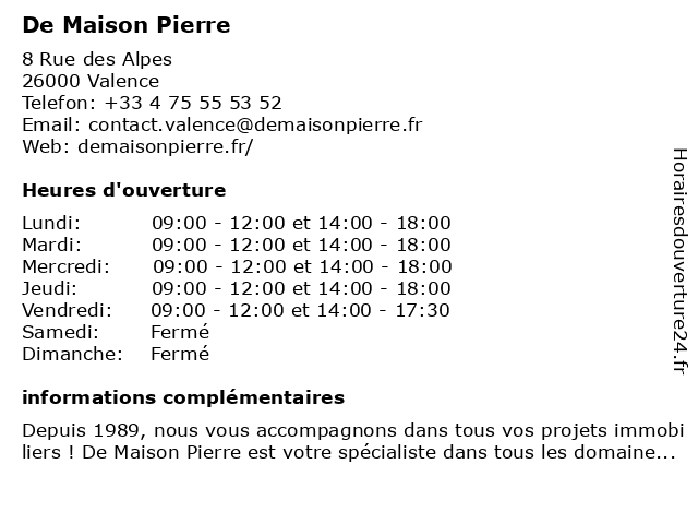| Samedi | Fermé |