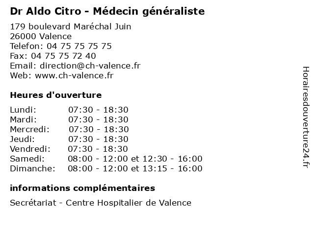 | Vendredi | 07:30-18:30 |