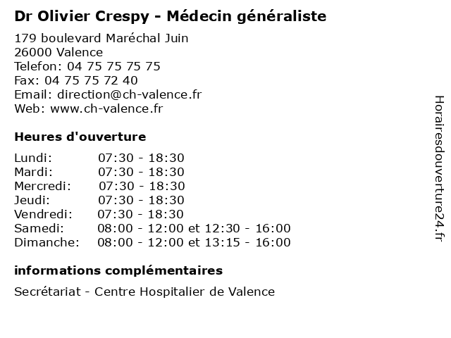 1 Dr Olivier Crespy - Médecin généraliste (Distance: 10,59 km) 3 Avenue de Provence, 26600 Pont-de-l'Isère crespy, docteur, dr, generaliste, généraliste, medical, médecin, olivier, soin 2 Dr Olivier Dhondt - Endocrinologue (Distance: 0,00 km) 179 boulevard Maréchal Juin, 26000 Valence consultation, dhondt, docteur, dr, endocrinologue, med, médecin, olivier, traitement 3 Dr Olivier Guerrier - Neurologue (Distance: 0,00 km) 179 boulevard Maréchal Juin, 26000 Valence consultation, docteur, dr, guerrier, med, médecin, neurologue, olivier, traitement 4 Dr Olivier Nicollet - Radiologue - secretariat (Distance: 1,49 km) 68 Rue Pierre Corneille, 26000 Valence dr, médecin, médecine, médical, nicollet, olivier, pharmaceutique, radiologue, secretariat, traitement 5 Korine Olivier (Distance: 1,76 km) 266 Avenue Victor Hugo, 26000 Valence achat, agence, appartement, immobilier, immobilière, korine, location, maison, olivier, vente 6 Maître Olivier Julien - Avocat (Distance: 2,34 km) 6 rue Bonjean, 26000 Valence avocat, avocate, avocats, civils, droits, julien, juridiques, maître, olivier |