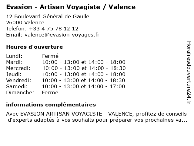 | Vendredi | 10:00-13:00 et 14:00-18:30 |