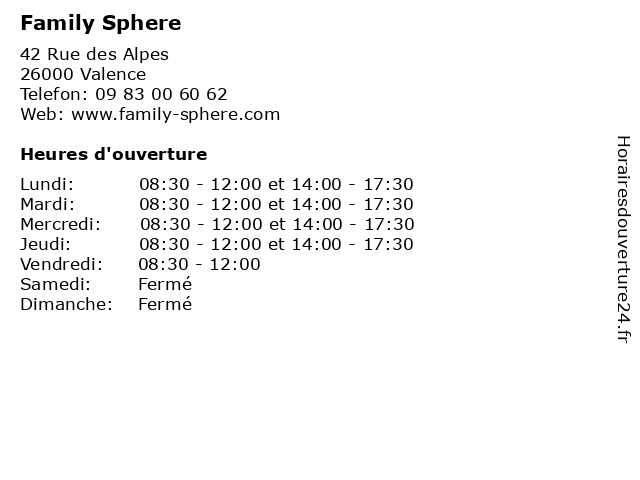 | Lundi | 08:30-12:00 et 14:00-17:30 |