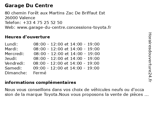 | Samedi | 09:00-12:00 et 14:00-19:00 |