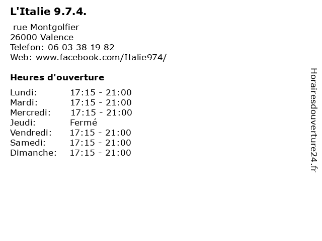 | Dimanche | 17:15-21:00 |