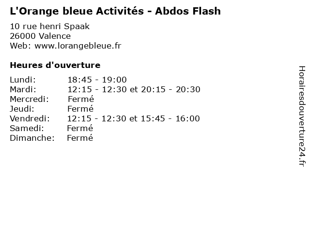 1 L'Orange bleue Activités - Abdos Flash (Distance: 0,00 km) 10 rue henri Spaak, 26000 Valence abdos, activités, bleue, exercise, fitness, flash, health, l'orange, outdoor, physical activities, sports 2 L'Orange bleue (Distance: 0,00 km) 10 rue henri Spaak, 26000 Valence bleue, exercise, fitness, health, l'orange, outdoor, physical activities, sports 3 L'Orange bleue Activités - Yako baila (Distance: 0,00 km) 10 rue henri Spaak, 26000 Valence activités, baila, bleue, exercise, fitness, health, l'orange, outdoor, physical activities, sports, yako 4 L'Orange bleue Activités - Yako detente (Distance: 0,00 km) 10 rue henri Spaak, 26000 Valence activités, bleue, detente, exercise, fitness, health, l'orange, outdoor, physical activities, sports, yako 5 L'Orange bleue Activités - Cuisses Abdos Fessiers (Distance: 0,00 km) 10 rue henri Spaak, 26000 Valence abdos, activités, bleue, cuisses, exercise, fessiers, fitness, health, l'orange, outdoor, physical activities, sports 6 Orange (Distance: 3,23 km) 13 rue victor hugo, 26000 Valence accessories, connections, gadgets, internet, mobile, orange, phones, telecom, téléphonie |