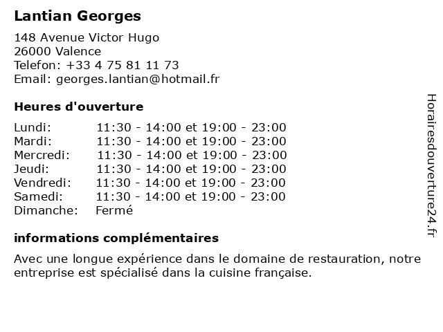 | Lundi | 11:30-14:00 et 19:00-23:00 |