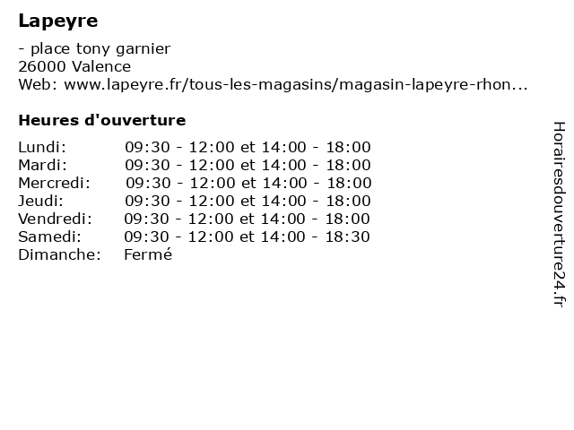 | Samedi | 09:30-12:00 et 14:00-18:30 |