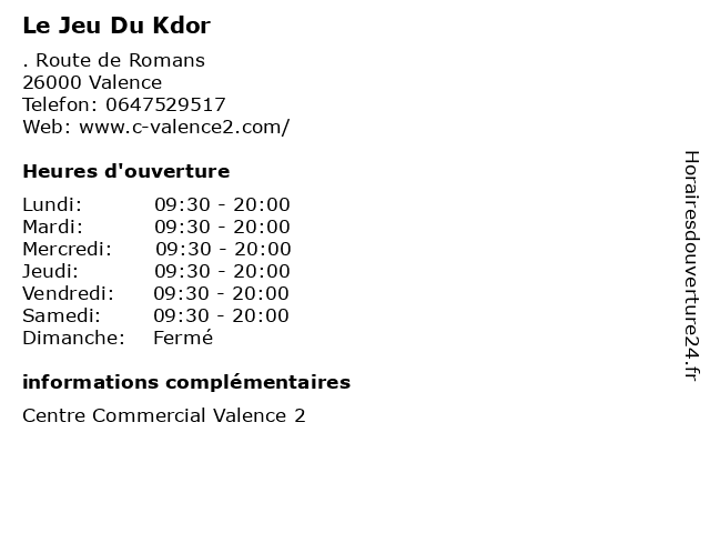 | Samedi | 09:30-20:00 |