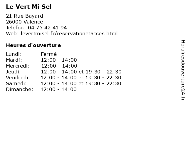 Samedi | 12:00-14:00 et 19:30-22:30 |