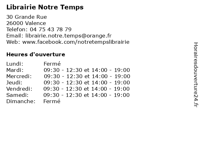 | Mardi | 09:30-12:30 et 14:00-19:00 |