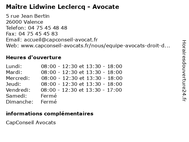 | Mercredi | 08:00-12:30 et 13:30-18:00 |