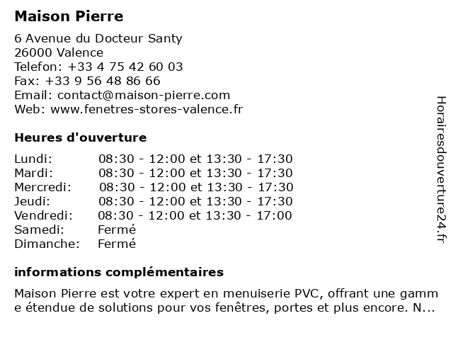| Lundi | 08:30-12:00 et 13:30-17:30 |