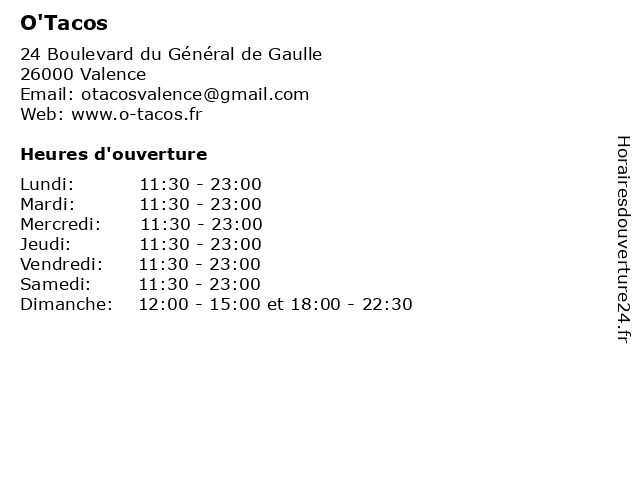 | Dimanche | 12:00-15:00 et 18:00-22:30 |