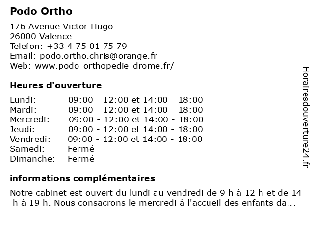 1 Ortho Bien Etre (Distance: 1,47 km) 316 Avenue de la République, 07500 Guilherand-Granges bien, etre, ortho 2 Sebastien Ravit - Podo-orthésiste (Distance: 1,63 km) 138 Rue André Malraux, 07500 Guilherand-Granges orthésiste, pedicure, pied, podo, podologue, ravit, sante, sebastien 3 Vincent Salle - Podo-orthésiste (Distance: 4,40 km) - Place Fernand Pouillon, 26000 Valence cheville, orteil, orthésiste, pied, podo, podologue, salle, vincent 5 Activ'Ortho (Distance: 18,45 km) 53 rue Charles Mossant, 26300 Bourg-de-Péage activ'ortho, appareillage, matériel, médical, orthopédie, prothèse, santé 6 Nathalie Rollin - Orthoptiste (Distance: 1,29 km) 47 Rue Louis Pasteur, 07500 Guilherand-Granges medecin, nathalie, ortho, orthoptiste, rollin, sante  |