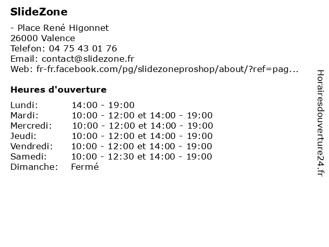 | Samedi | 10:00-12:30 et 14:00-19:00 |