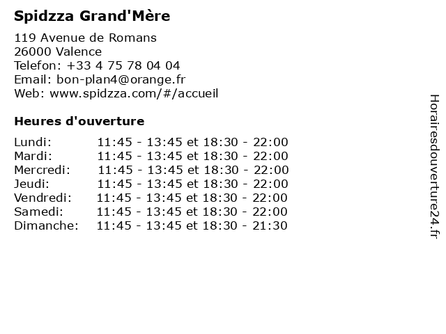 | Mardi | 11:45-13:45 et 18:30-22:00 |