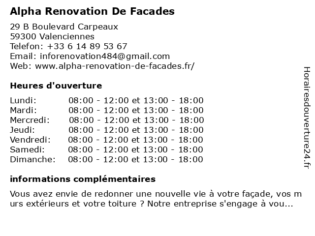 | Lundi | 08:00-12:00 et 13:00-18:00 |