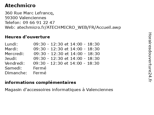 | Mardi | 09:30-12:30 et 14:00-18:30 |