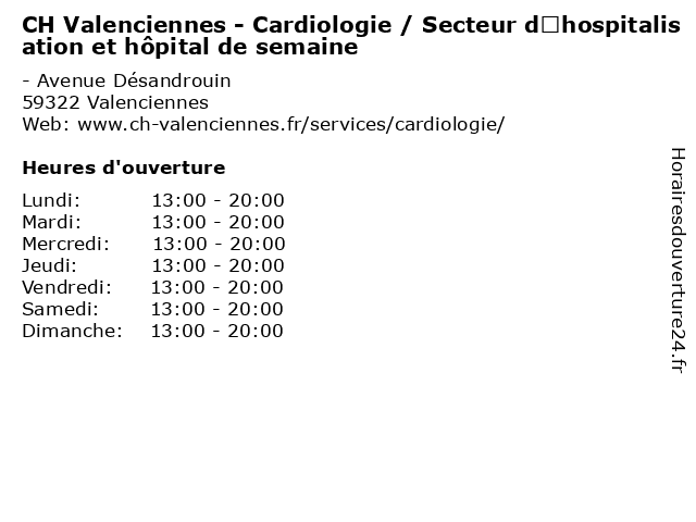 | Mercredi | 13:00-20:00 |