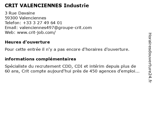 Termes de recherche pour CRIT VALENCIENNES Industrie:valenciennes, industrie, crit |