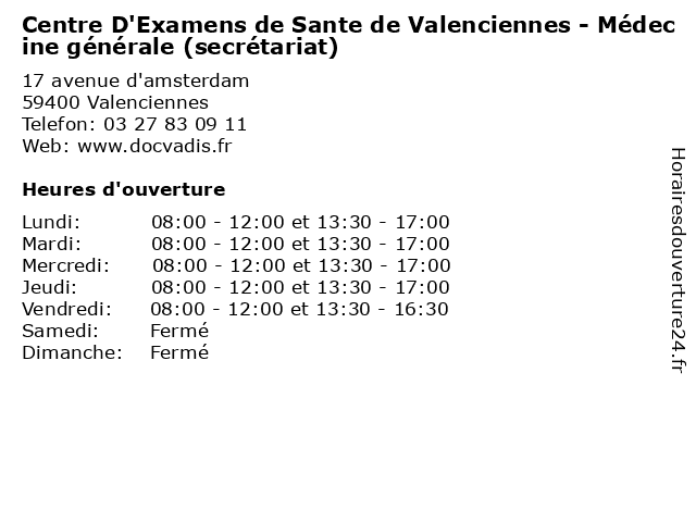 | Vendredi | 08:00-12:00 et 13:30-16:30 |